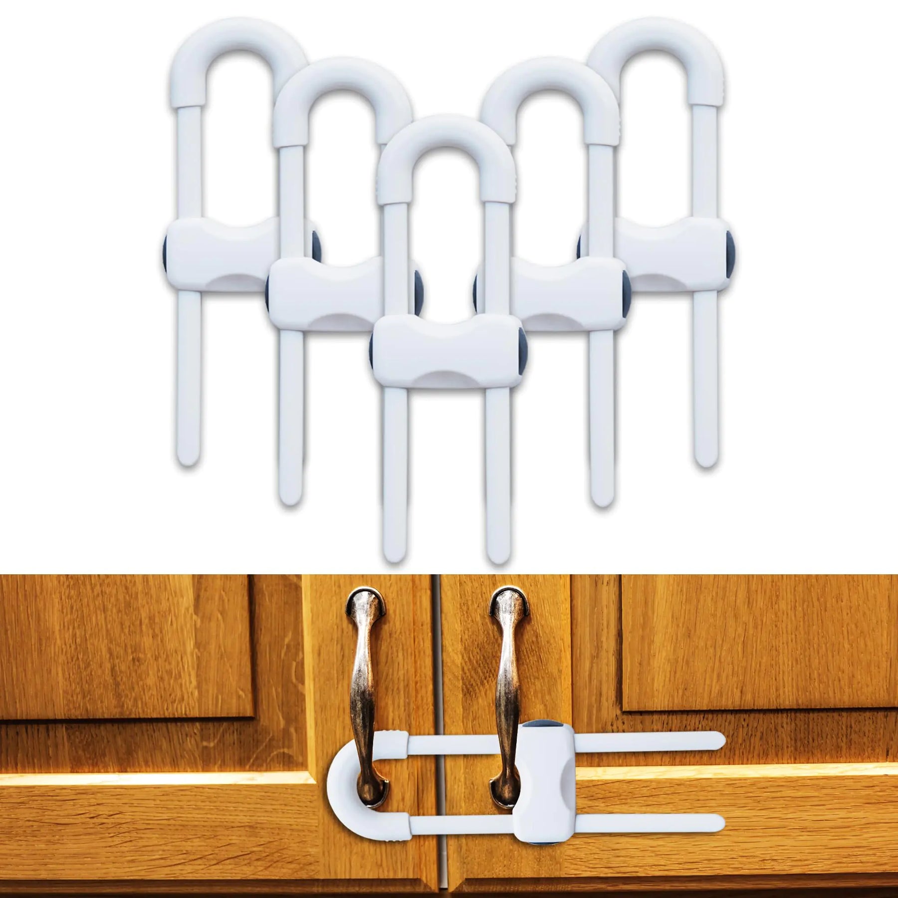 Chengcan U-shaped cabinet locks provide effective baby proofing - easy to install on furniture kitchen oven cabinet drawers without tools (A - White 6 pieces (1 pack))
