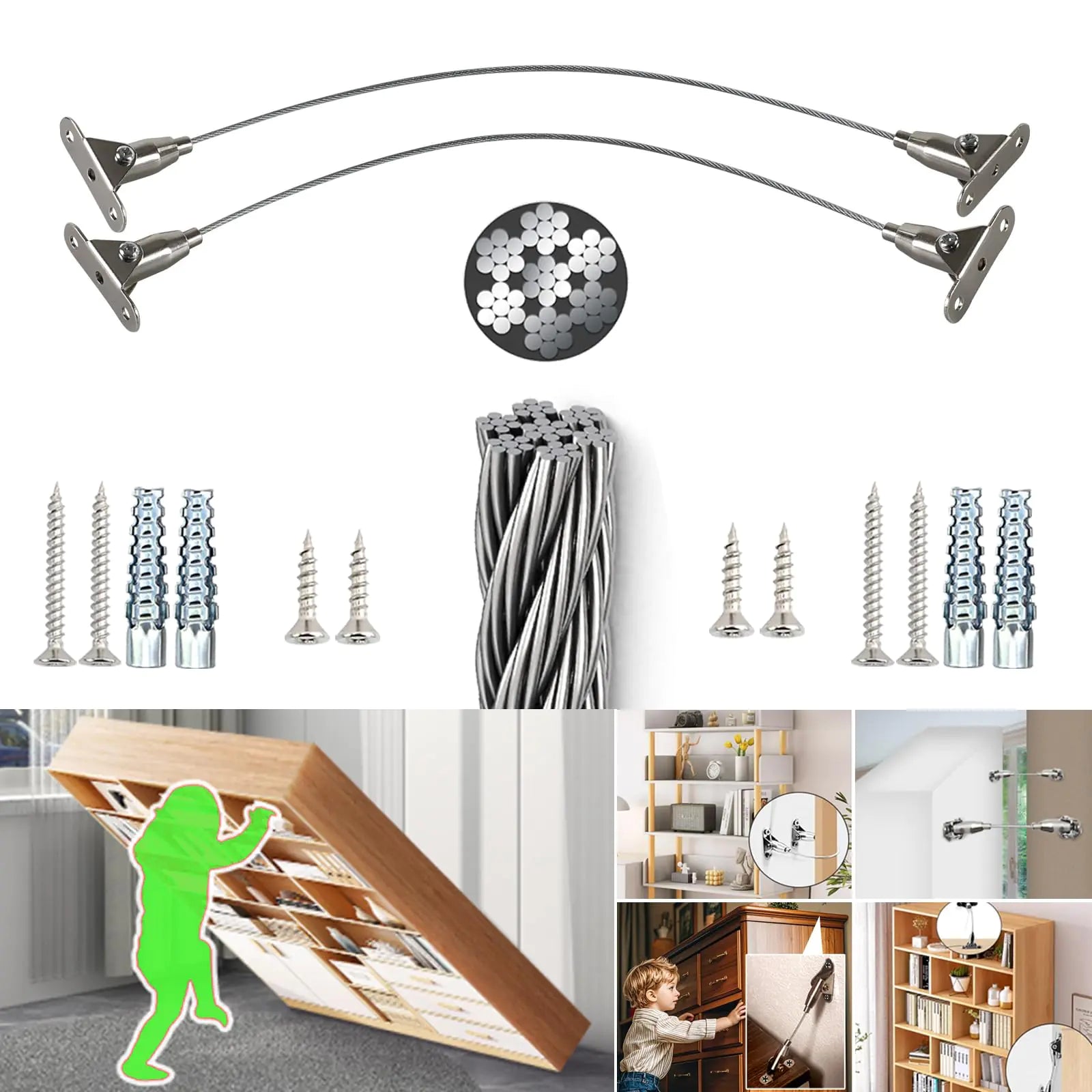 [「STRONG PROTECTION WORRY-FREE FOR BABIES」: Our furniture safety fixator made of stainless steel is a must-have for baby proofing. The powerful furniture anchors prevent furniture from collapsing. With a 300-pound load-bearing capacity it can withstand earthquakes and storms. Even in minor quakes (below magnitude 5.5) it keeps furniture firmly in place. Ideal for baby furniture and toddler room furniture providing all-round safety for your little ones 「VERSATILE APPLICATION COMPREHENSIVE PROTECTION」: This fixator comes with screws steel wire rope adjustable straps brackets and wall anchors. Widely used for various furniture like bookshelves cabinets and TV stands. A great baby proofing kit for fireplace baby proofing babyproofing cabinets and baby proof drawers. Ensures safety for babies and pets a top choice for child proof 「EXCELLENT QUALITY SAFE AND RELIABLE」: Crafted from high-quality metal it has high impact resistance flame retardancy stability and resists aging and cracking. The anti tip furniture anchors ensure furniture stability. Each bracket can bear 300 pounds. Two sets per furniture piece for added stability. Essential for toddler bedroom and baby room essentials 「EASY INSTALLATION FLEXIBLE DISASSEMBLY」: Designed for easy use. One end attaches to the wall the other to furniture. Adjustable head for flexibility. Comes with screws and wall anchors for simple installation. Easily removable for moving furniture or cleaning. Perfect for furniture closeout "「ESSENTIAL GOODS CARE FOR GROWTH」: As part of the baby safety kit its essential for baby rooms and playrooms. From wall padding to furniture anchors it provides a safe environment. Complies with the baby proofing house checklist. A wise choice for a safe home"]